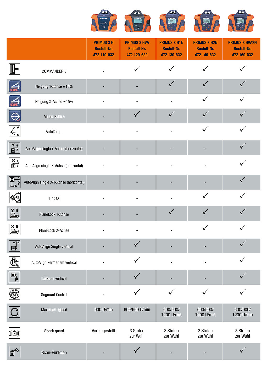Herausragend ist der Neigungsbereich von ± 15% bei den Neigungslasermodellen PRIMUS 3 H1N, H2N und HVA2N.